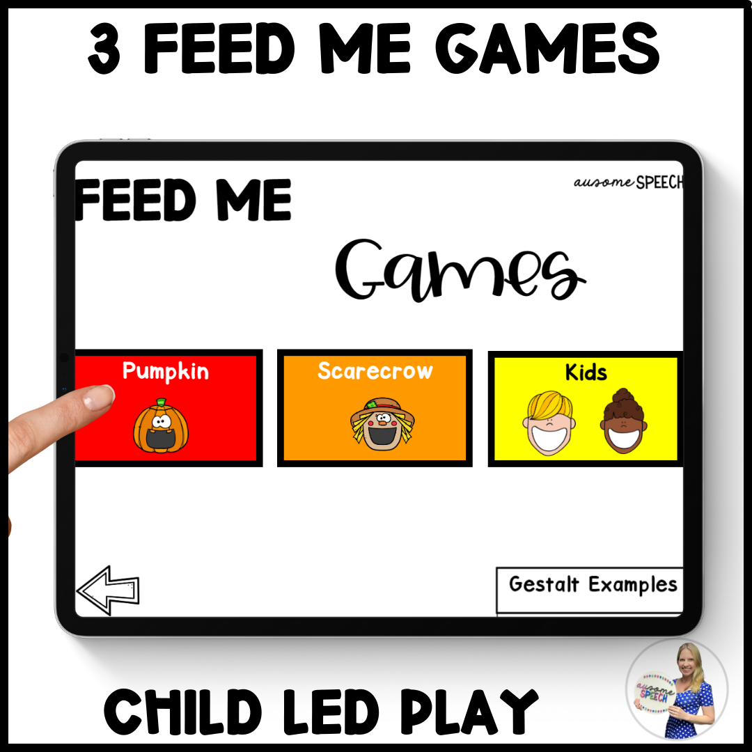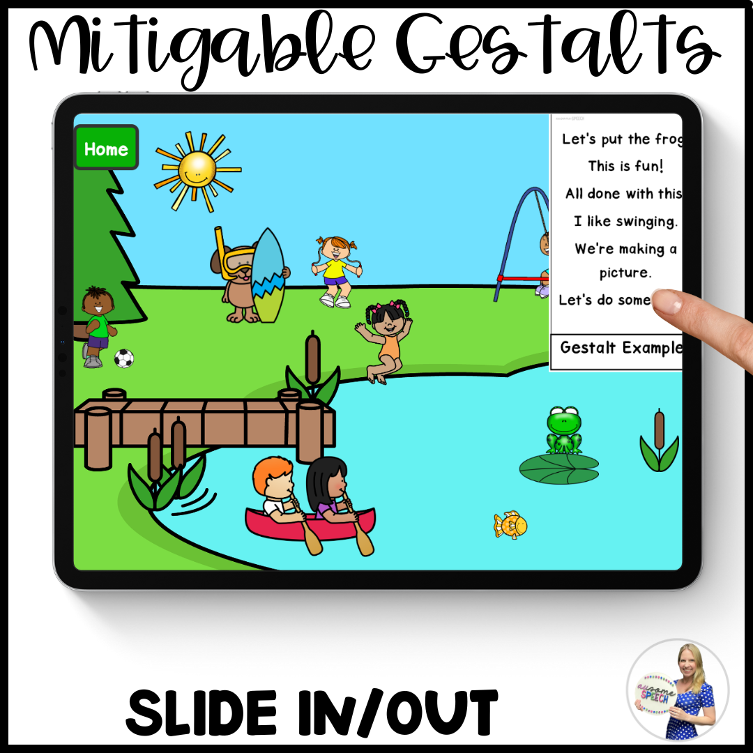 This interactive game was created with gestalt language development ideas. The pages are interactive, can be child led, and contain ideas for modeling language (getstalts that can be mitigated for children in the early stages of Natural Language Acquisition).